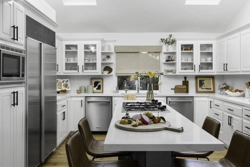 Do you love gold accents? Consider adding them to your kitchen to spice up your space. Also be aware that your home office or entertaining areas are perfect places for color and fun elements. If dark and moodier is more your style, add more blacks and striking accents—or maybe bright and fresh would be perfect for your dining room so you choose a bright floral wallpaper! Your options to evoke a particular emotion are endless.