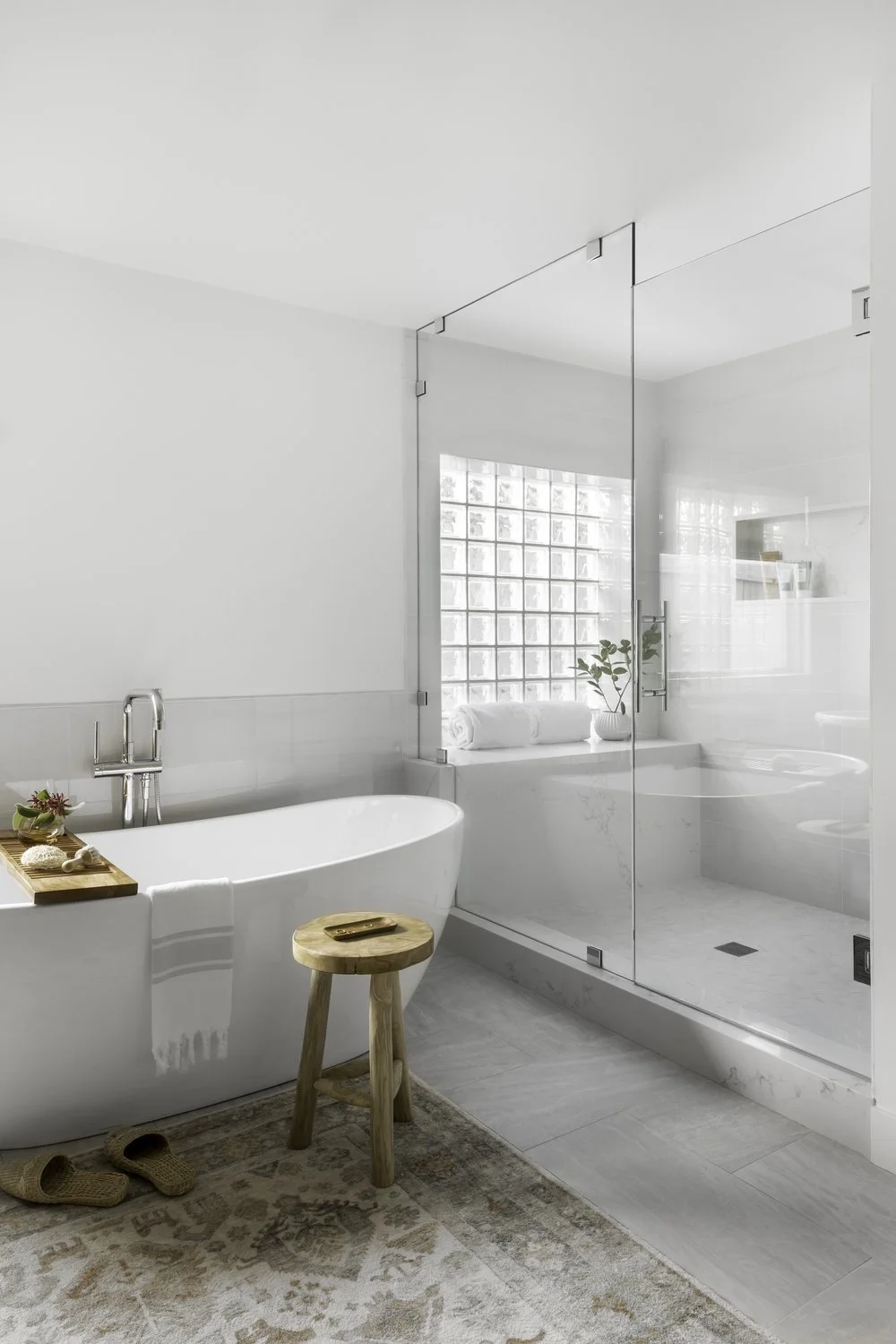 As busy parents, time for relaxation is far and few between for this couple. Their ask was for me to transform their sad and dated primary bathroom into an absolutely stunning, spa-like space that offered them a place to recharge without having to leave their home. Mission accepted!